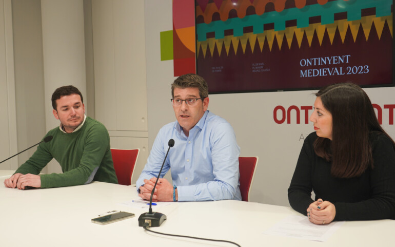 L’Alcalde d’Ontinyent, Jorge Rodríguez, la regidora de Festes, Àngels Muñoz, i el President de la Societat de Festers, Vicent Pla, presentaven aquest dijous l’edició d’enguany de ‘Ontinyent Medieval’, el mercat medieval que organitza l’Ajuntament, i que enguany oferirà prop de 40 activitats al centre històric entre els dies 24 i 26 de febrer, coincidint amb el ‘Mig Any Fester’ de Moros i Cristians de la Societat de Festers del Santíssim Crist de l’Agonia.