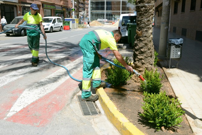 Por otro lado, se ha procedido también a la plantación de una treintena de alcorques en diferentes puntos de la circunvalación de la localidad, donde se abatieron y talaron palmacias meses atrás. Estos espacios y otros circundantes se han llenado con plantas autóctonas adaptadas al medio y otras alóctonas que soportan los rigores propios del clima mediterráneo. Todas ellas tienen necesidades mínimas de agua una vez se encuentran arraigadas al terreno y mantienen el follaje y la floración constante en todas las estaciones del año.