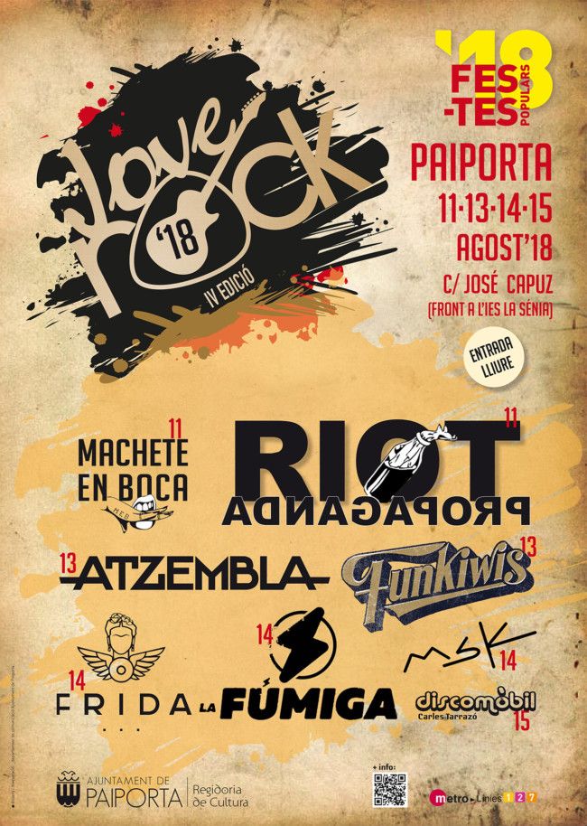 En aquest sentit, enguany pren un gran pes la quarta edició del JoveRock, festival gratuït de concerts per a la joventut, que enguany també inclou una nit de discomòbil. L'esdeveniment estarà repartit en tres dies: l'11, el 13, el 14 i el 15 d'agost. El dissabte 11 actuaran a Paiporta Riot Propaganda i Machete en Boca. El dia 13 serà el torn d'Atzembla i Funkiwis, el 14 s'espera l'actuació de Frida, La Fúmiga i MSK, i la nit del 15 serà el torn de la discomòbil.