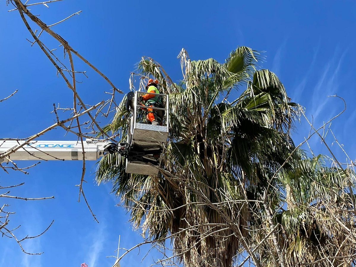 El Ayuntamiento de Valencia, a través de la concejalía de Parques y Jardines, ha comenzado oficialmente la campaña de poda de palmeras en la ciudad. Durante los próximos seis meses, un total de 2.000 palmeras de viario serán sometidas a tratamiento por los técnicos municipales para eliminar palmas secas o en mal estado. Esta labor ya supone un incremento del 40% de las palmeras podadas respecto al año anterior, cuando el tratamiento específico de las ramas afectó a 1.423 palmeras.