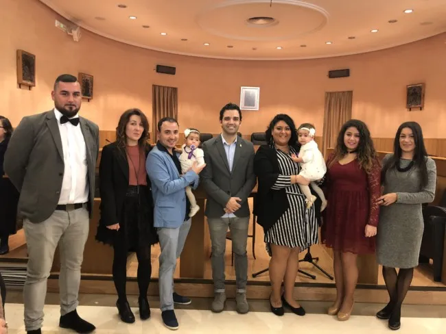 El Ayuntamiento de Paterna ha celebrado el primer bautizo civil en la historia del Consistorio. El alcalde, Juan Antonio Sagredo, fue el encargado de oficiar el pasado 23 de diciembre el acto de bienvenida al municipio de Leyre y Arya, dos pequeñas gemelas paterneras de un año de edad, a las que sus padres quisieron homenajear con una simbólica ceremonia en conmemoración de su nacimiento y su vida en Paterna.