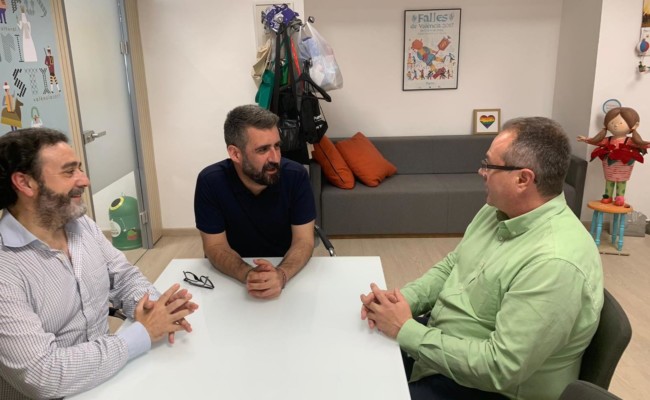 El concejal de Cultura Festiva y presidente de la Junta Central Fallera en funciones, Pere Fuset, se ha reunido con el nuevo presidente de la Interagrupación de Fallas, Guillermo Serrano.