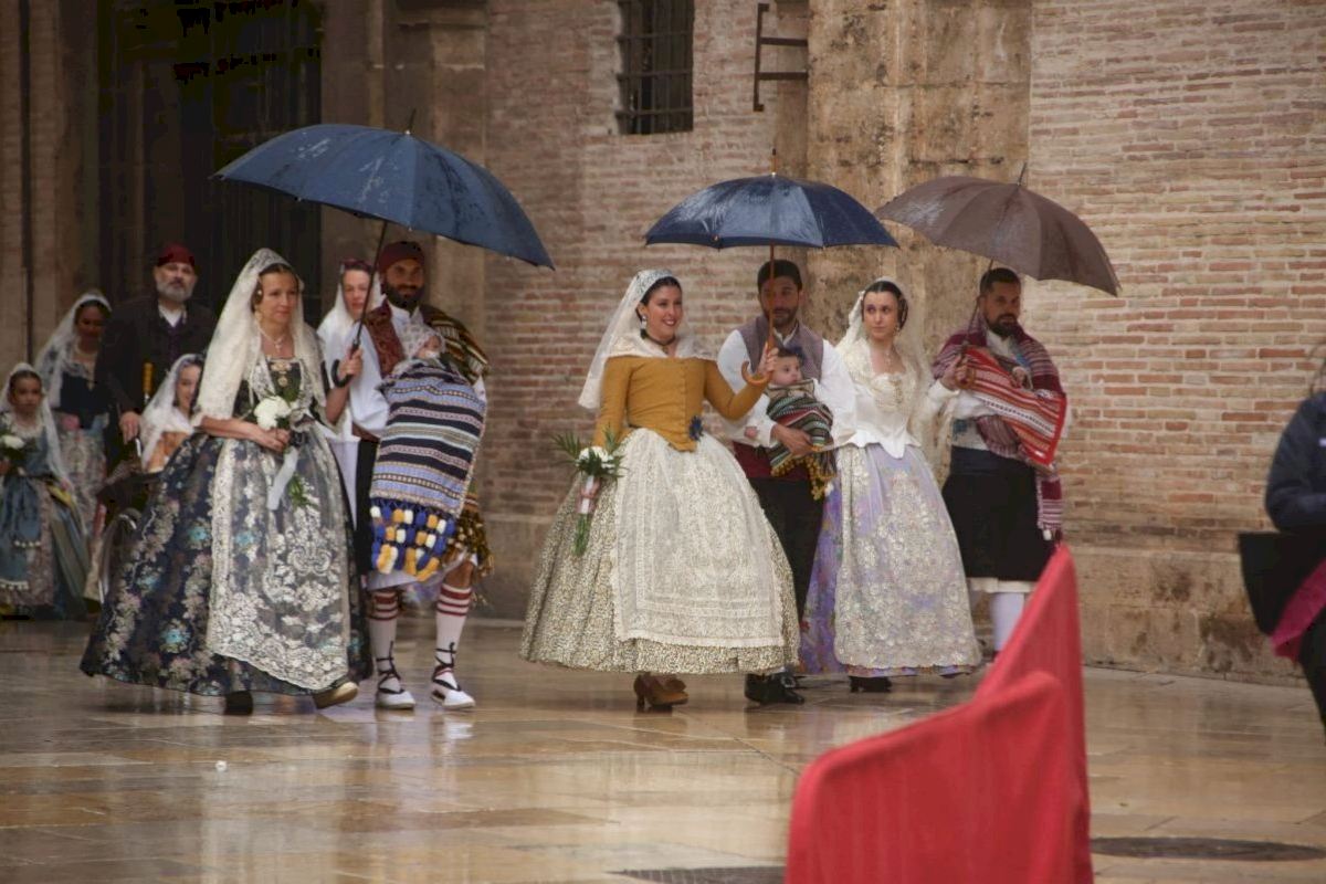 Miles de falleras y falleros llenan desde esta tarde el corazón de la ciudad de València con la emoción y la devoción que siempre marcan la Ofrenda a la Virgen de los Desamparados y que, en esta ocasión, se desarrolla en un ambiente lluvioso y frío.