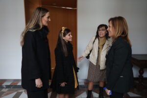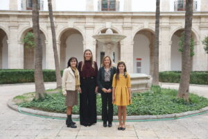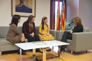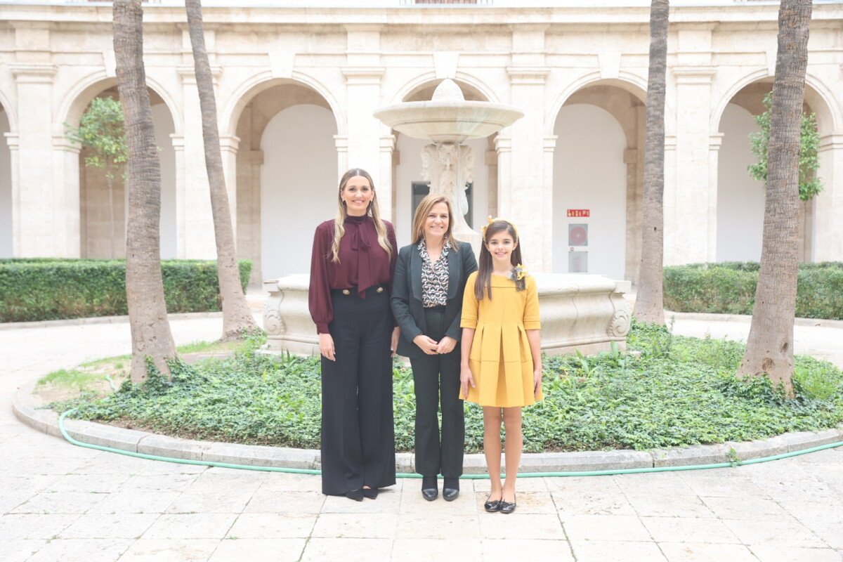 La delegada del Gobierno en la Comunitat Valenciana, Pilar Bernabé, ha recibido a la fallera mayor de València, Laura Mengó, y a la fallera mayor infantil, Paula Nieto.