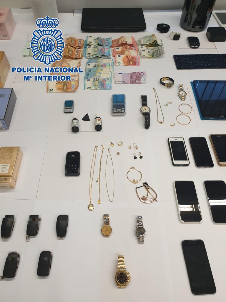 En los registros practicados se intervino una gran cantidad de objetos de valor; seis relojes de lujo, joyas, teléfonos móviles de gama alta, ordenadores portátiles y más de 4000 euros en metálico.