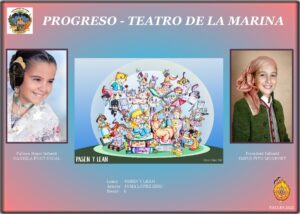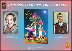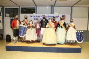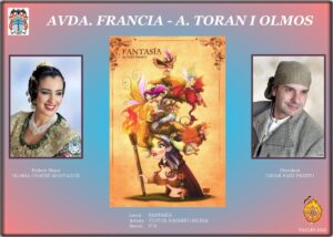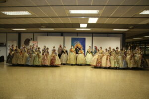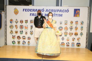 Tras la inauguración, los máximos representantes de cada una de las comisiones posaron ante sus proyectos junto a Nerea y Carmen, acompañadas por el Presidente de la Federació Agrupació Falles Marítim, Pepe Pastor, para hacerse la foto protocolaria.