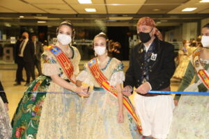 El acto comenzó con la entrada en el recinto de Nerea López Maestre y Carmen Martín Carbonell, Falleras Mayores de València 2022 quienes, acompañadas por el presidente de la agrupación, Pepe Pastor, cortaron la cinta inaugural protocolaria de la exposición.