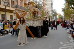 Fotos: Rafael Montesinos.- Semana Santa Marinera, Viernes Santo. El Señor ha muerto y es enterrado en el sepulcro. El día culmina desde media tarde y más allá de la medianoche en el Grao, Canyamelar y Cabanyal, con la procesión del Santo Entierro, en la que participan todas las cofradías y colectivos con sus tronos y andas perfectamente engalanados.