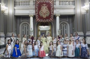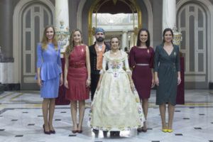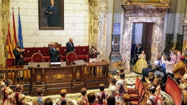 Así, las escalinatas de mármol del Ayuntamiento volvía a acoger, a modo de alfombra roja a la valenciana, a todas las personalidades que se darían cita en el hemiciclo de plenos para dar el primer homenaje a sus nuevas reinas de las Fallas de Valencia. Entre ellas, las Cortes de Honor y Falleras Mayores de Valencia 2018, que de este modos tenían la oportunidad de pasar el testigo a sus sucesoras en el cargo.