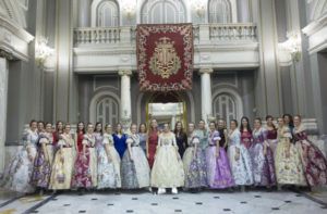 Llegaba el momento de las fotos oficiales, en el Salón de Cristal del Ayuntamiento, como viene siendo tradicional, así como el de los corrillos, felicitaciones, conversaciones de salón y reencuentros del mundo fallero que, por un día, volvía a convertirse en el protagonista del edificio consistorial.