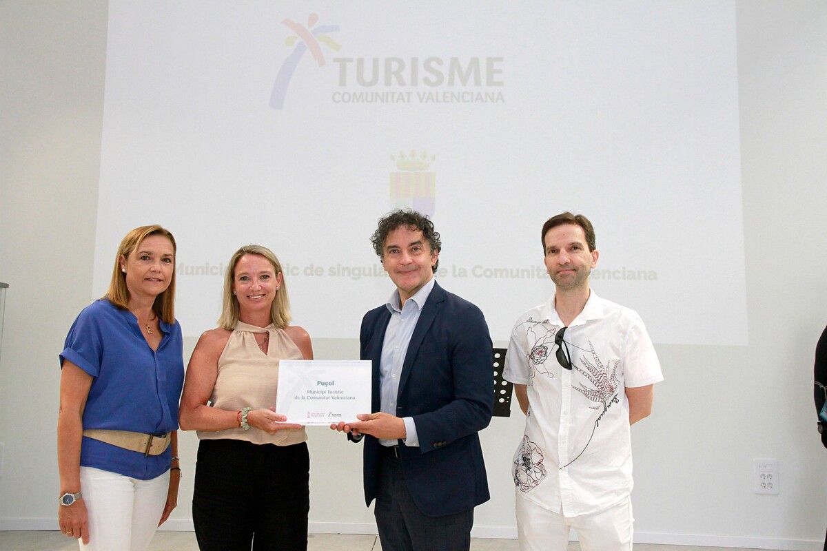 El secretario autonómico de Turisme, Francesc Colomer, ha entregado a la alcaldesa de Puçol, Paz Carceller, el distintivo que acredita al destino la condición de 'Municipio Turístico de Singularidad’ de la Comunitat.