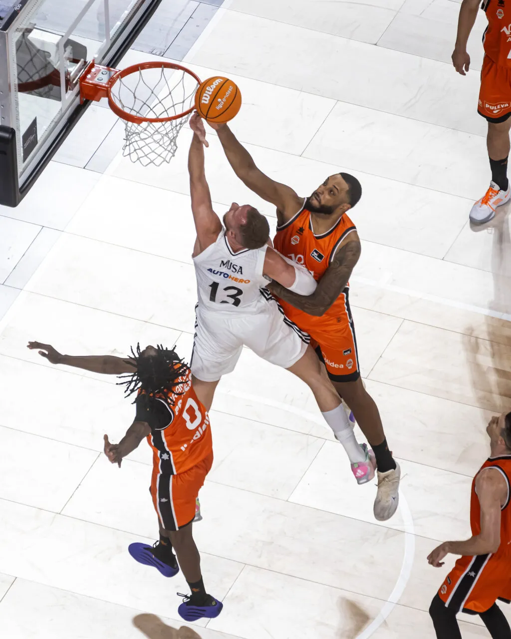 El rebote se convirtió en el enemigo invisible: 9 capturas para el Madrid por solo 3 del Valencia Basket en la prórroga. Cada una de ellas era una daga.