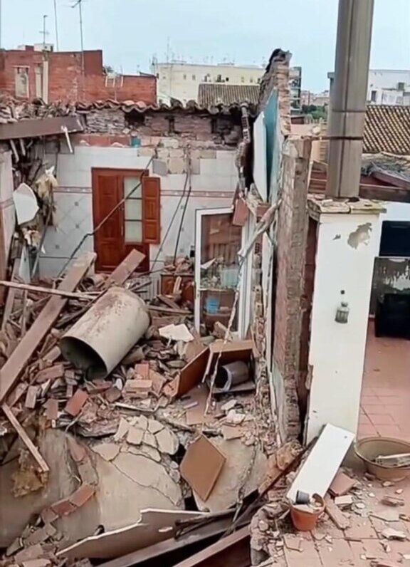 Los bomberos municipales de València rescataron este lunes a una mujer que quedó bloqueada en una terraza tras el derrumbe parcial de un edificio de dos alturas en la pedanía de Massarrojos.