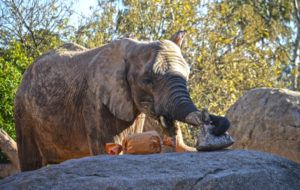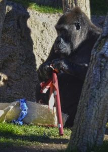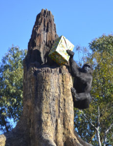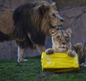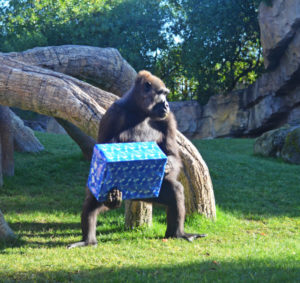 Esta bonita mañana de invierno leones, suricatas, elefantes, gorilas y chimpancés se han visto sorprendidos con los regalos que los Reyes Magos de Oriente les habían dejado. Al abrirlas bajo el estímulo visual del color de los paquetes y el olor de sus alimentos preferidos, han disfrutado de objetos para jugar y delicias que degustar.