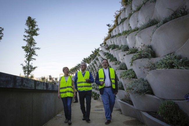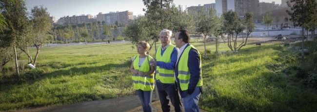El alcalde, Joan Ribó, y los concejales Vicent Sarrià y Pilar Soriano han recorrido los distintos espacios del parque en la zona Russafa-Malilla: la Plaza de las Artes, la Huerta Jardín, los Jardines Florales, el Jardín Romántico, el Jardín de los Niños y la Pantalla Oeste.
