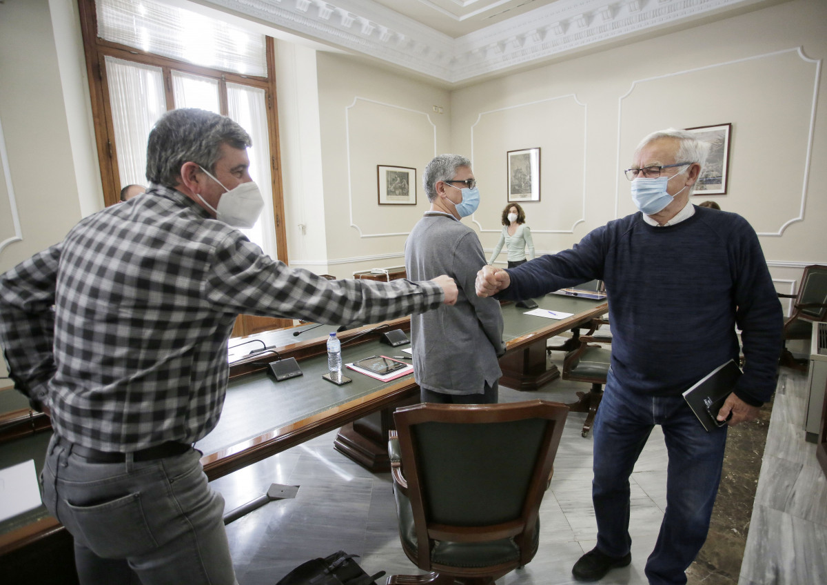 El alcalde, Joan Ribó, acompañado del vicealcalde, Sergi Campillo, se ha reunido en la mañana de este lunes en el Ayuntamiento con representantes sindicales de CPS-Puerto de València, para tratar los efectos de la ampliación norte en el empleo. Ribó ha subrayado que a los “problemas” de deterioro de las costas, la movilidad, los materiales para hacer la plataforma y paisajísticos, se debe añadir la destrucción de puestos de trabajo.