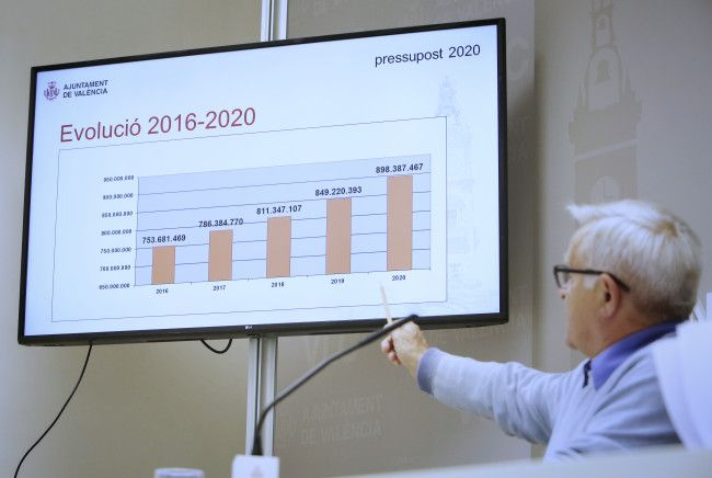 El Ayuntamiento de València cuenta para 2020 con el presupuesto más alto de su historia, con un montante de 898.387.467 euros. Esto son 49,1 millones más que en el ejercicio actual. El principal documento económico del próximo año contempla un incremento de los gastos que generan los servicios «cada vez de mayor calidad» que se prestan a la ciudadanía (limpieza, parques, seguridad...), «así como el aumento de recursos para hacer frente a las necesidades vecinales cada vez más ambiciosas (servicios sociales, vivienda...)». Las cuentas municipales también apuestan por la dinamización de los sectores económicos, el comercio, la innovación y la ocupación en la ciudad, y la rehabilitación urbana de los barrios de València. El alcalde Joan Ribo ha destacado algunos datos como la nueva partida destinada a la limpieza y recogida y gestión de residuos urbanos, que asciende hasta los 74,9 millones de euros; y el grado de ejecución de las inversiones, «que es mucho más alto ahora que con el anterior gobierno: solo hay que comparar los 35 millones ejecutados en 2013, con los 79 millones de 2018».