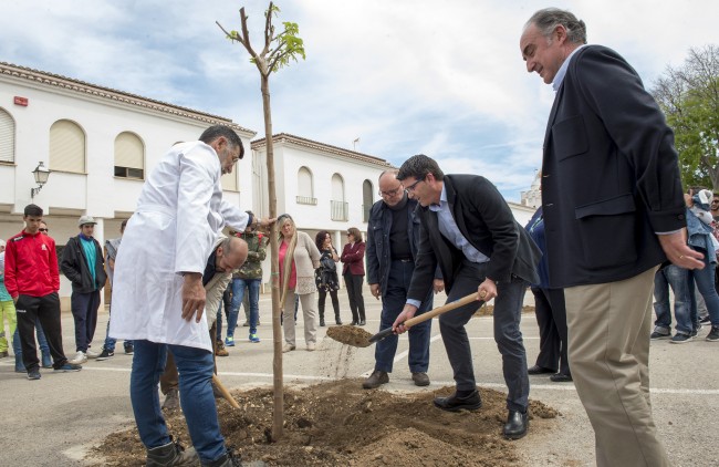 La visita de Jorge Rodríguez al centro formativo de Catarroja ha concluido con un acto simbólico en el que tanto el presidente como los diputados han plantado unos árboles en la zona de aparcamiento de la escuela. Rodríguez ha conmemorado de esta forma, acompañado por más de un centenar de alumnos, el 60 aniversario de este centro cualificado en el que está prevista la próxima construcción de un umbráculo y un nuevo invernadero, así como las mejoras que puedan incluirse con el incremento de la asignación económica anunciado por el presidente.