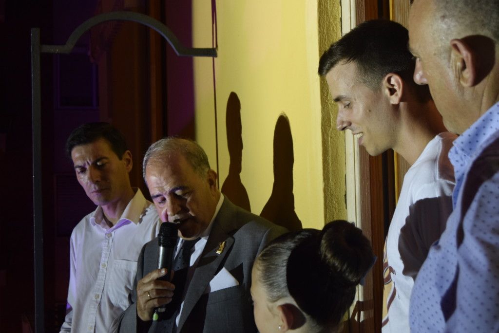Fue el mismo Eugeni Alemany quien, en torno a la media noche, presentó a la persona escogida en 2018 para ofrecer el pregón con el que quedarían oficialmente inauguradas las fiestas de San Roque 2018. Acompañado del alcalde de Burjassot, Rafa García, del clavario mayor, Eros Quesada, del concejal de Fiestas, Manuel Pérez Menero, y de su orgullosa nieta, Miguel González Defez, comisario jefe provincial de la Policía Nacional de la Comunidad Valenciana, salió al balcón del Ayuntamiento para ofrecer a los vecinos y vecinas reunidos en la plaza, un emotivo pregón en el que no se olvidó de nadie ni de nada.