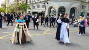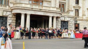 La ofrenda transcurría desde la plaza Ayuntamiento, calle de San Vicente, calle de la Paz hasta la Glorieta, para volver por la calle del Mar, en la que se ubica la Casa natalicia de San Vicente Ferrer. Allí se rindieron honores al Patrón de Valencia.