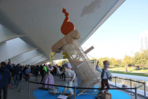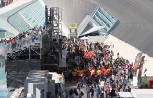 El Instituto Confucio de la Universitat de València también se ha unido a La Fiesta del Maratón en el segundo día de Expo Deporte. Una gran serpiente china ha recorrido los aledaños de Expodeporte mezclándose con la gran cantidad de personas que este sábado han llenado la Ciutat de les Arts i les Ciències.