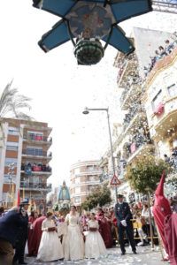 A continuación, la comitiva se dirigía a la parroquia de la Asunción para celebrar la tradicional misa. Una vez terminada la celebración, todas las hermandades, y esta vez tocando los tambores y cornetas con ritmo alegre, además de llevar la cara descubierta, subían hasta la parroquia de Monte-Sión. Más tarde, Cristina, junto a toda su hermandad, se dirigía al asilo Santa Elena para que los torrentinos y torrentinas más mayores disfrutaran también del domingo de Resurrección.