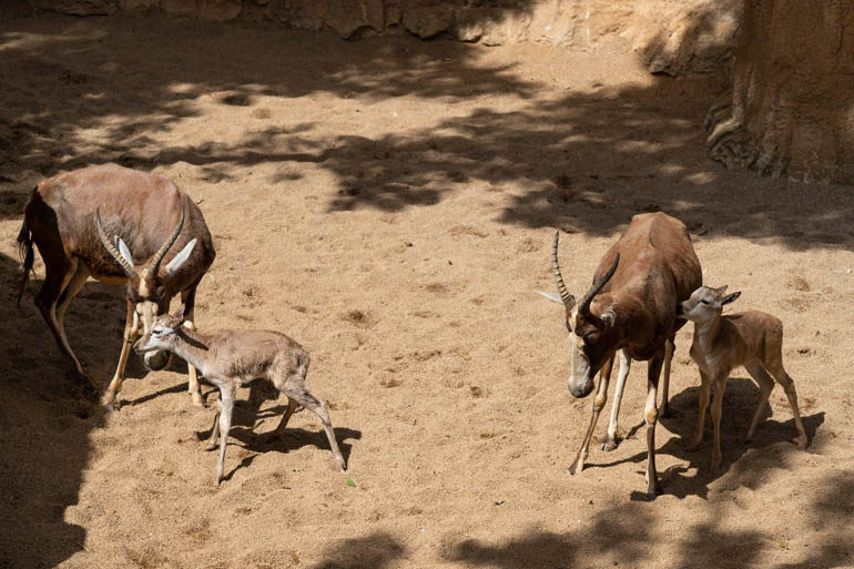 Nunca se habían recibido con tanta alegría los nacimientos primaverales en Bioparc como en este atípico 2020. El parque se llena de nueva vida en este “baby boom” los últimos en nacer han sido dos blesbok (Damaliscus pygargus phillipsi), un antílope que se caracteriza por las llamativas marcas blancas que vemos en sus rostros y que contrasta con el marrón rojizo de sus cuerpos. De hecho, su nombre proviene de la unión de dos palabras holandesas: “Bles” (mancha blanca) y “Bok” (cabra macho). Ambas crías son hijos de un joven macho, Kees, que llegó al parque en 2019 procedente de Gaia ZOO (Kerkrade, Holanda). Una de las madres, Ella, se trasladó en 2008 desde el zoológico y jardín botánico Wilhelma, (Stuttgart, Alemania) y la otra, Eva, nació en Bioparc en 2009. Con apenas unos días de diferencia han nacido los dos chivos, uno es un macho y del segundo todavía se desconoce el sexo. Las dos madres ya han parido anteriormente en Valencia y el proceso está evolucionando con total normalidad. El periodo de lactancia en esta especie suele durar 4 meses y las crías permanecen con sus madres durante todo el periodo.