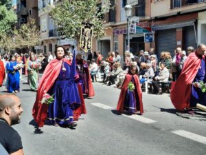 El detalle: En este desfile no participa ninguna de las imágenes y doseles de la Semana Santa Marinera. El itinerario arranca en el Mercado del Cabanyal, y transcurre por la Avenida Mediterráneo, calles Escalante y Pintor Ferrandis, Plaza de los Ángeles, calles Pedro Maza y Reina, Plaza Semana Santa Marinera, calle Dr. J. J. Dómine, Avda. del Puerto, calles Cristo del Grao, Ernesto Anastasio, Francisco Cubells y Rosario y final en la Plaza del Rosario.