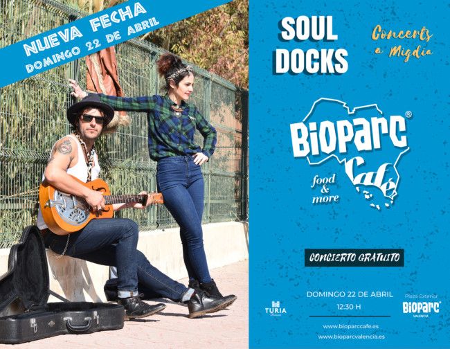 Bioparc Valencia ofrece este domingo 22 de abril a las 12.30 horas un concierto gratuito dirigido a todos los públicos del grupo Soul Docks. Al aire libre se podrá escuchar soul, blues y rock clásico con versiones de temas de los Rolling Stones, Joe Cocker, Bill Whiters, Otis Redding, Tina Turner, Amy Winehouse o la Creedence, entre otros.