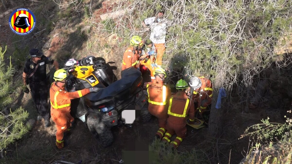 Rescatan a una pareja tras caer con un quad por un desnivel de 5 metros en Picassent
