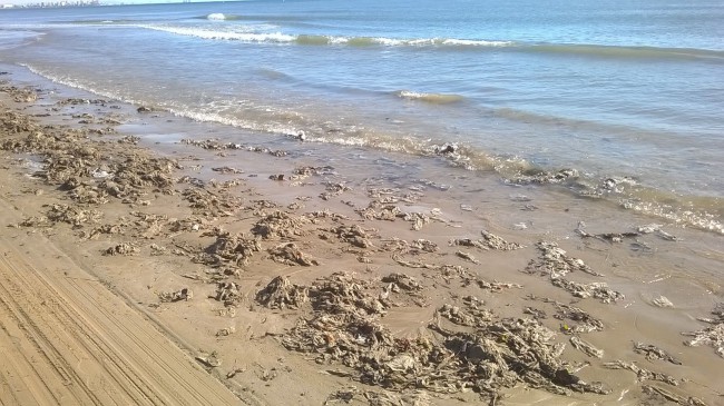 Una invasión de toallitas higiénicas llegadas desde el emisario de Vera obliga a cerrar la Patacona a los bañistas