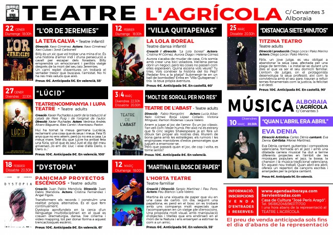 Alboraia inclou una àmplia varietat d'activitats a la programació cultural del primer trimestre de 2017