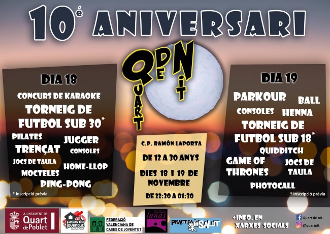El proyecto de ocio nocturno alternativo de Quart de Poblet celebra su 10º aniversario