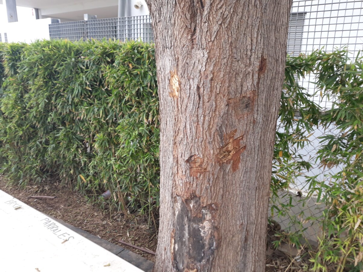 Inyectan aceite de motor quemado en veinte árboles de una calle de Burjassot