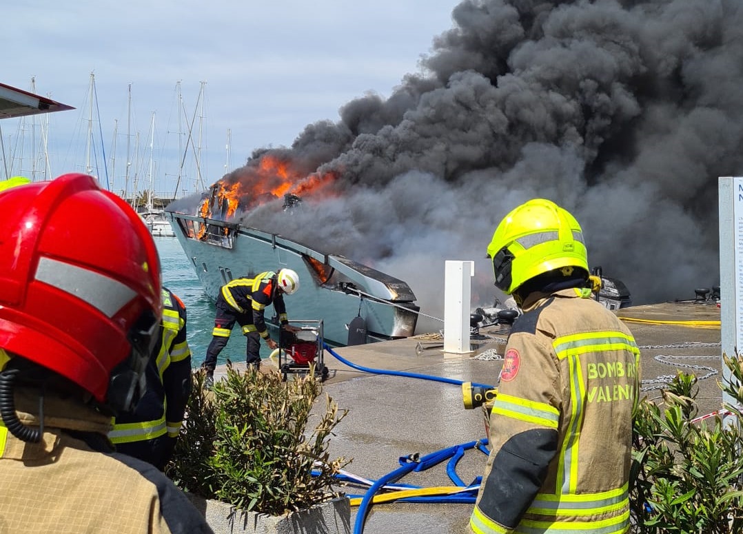 Un yate de lujo sufre un incendio en la Marina Sur del Puerto de València