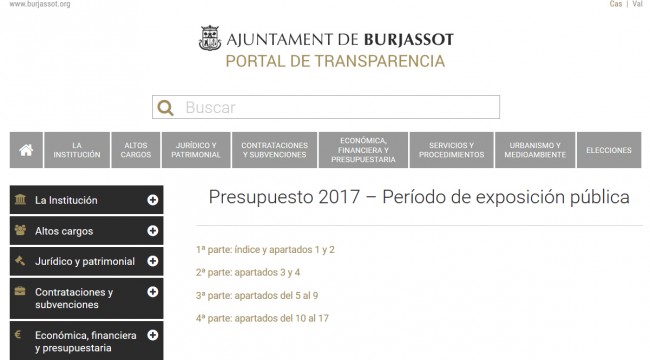 Burjassot pone a disposición de los vecinos el presupuesto de 2017 en el portal de transparencia