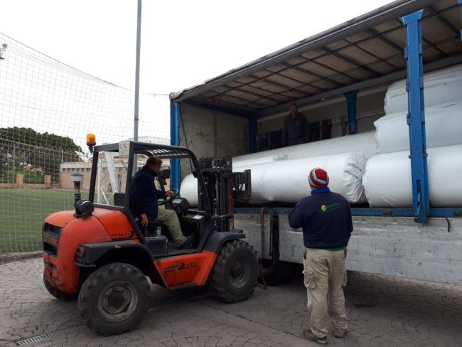 Nuevo césped en los campos del fútbol del Parc Central de Torrent
