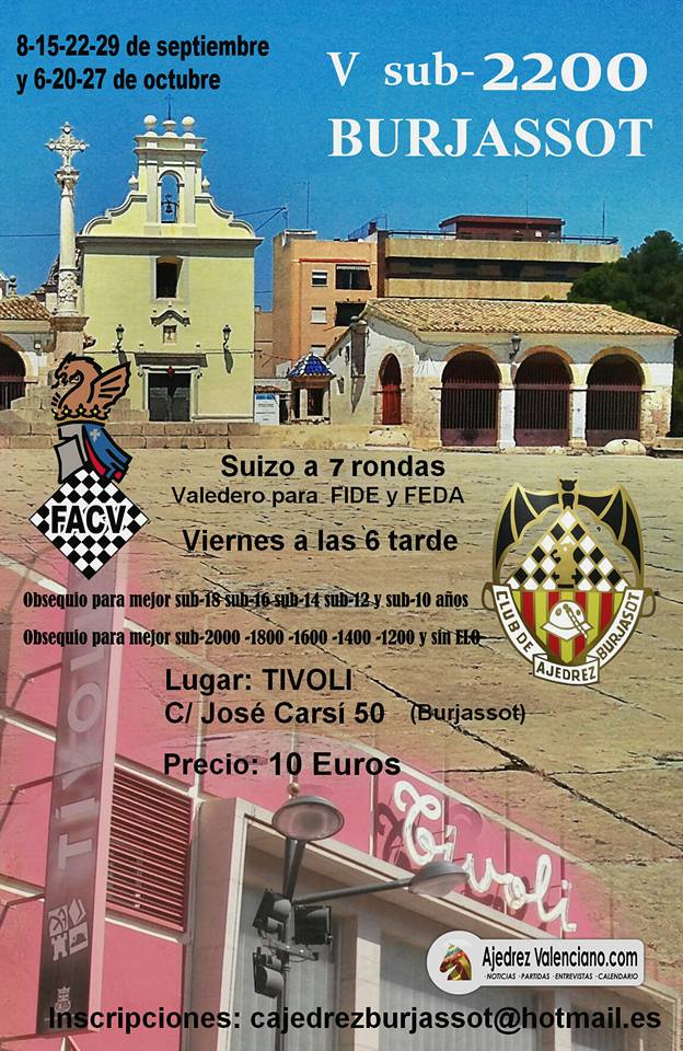 El Centro Cultural Tívoli acoge el V Torneo Sub-2200 de la mano del Club Ajedrez Burjassot