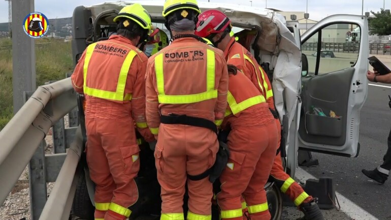 Excarcelan al conductor de un coche tras chocar con un camión en la A-7 a la altura de Picassent