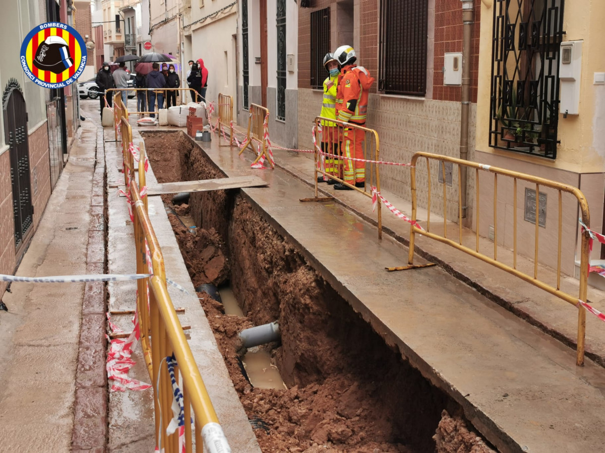 Se hunden los laterales de una zanja en una calle de Massanassa