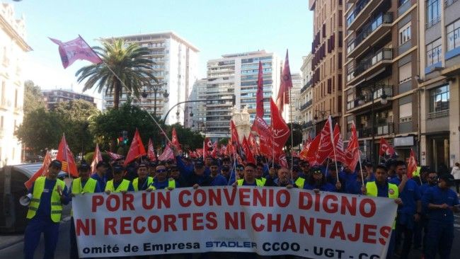 Medio millar de trabajadores de Stadler Rail se manifiestan en València contra la paralización del convenio durante más de un año