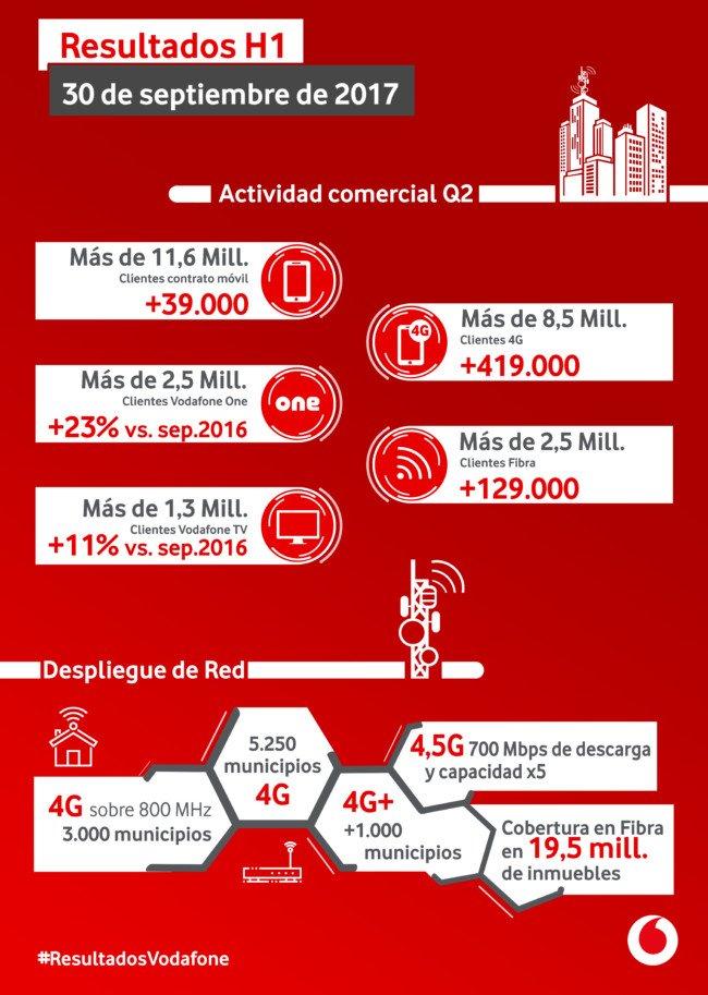 Los ingresos por servicio de Vodafone España alcanzan los 1.144 millones, un 2 % más en términos orgánicos
