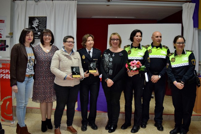 Isabel García y el grupo GAMA de la Policía Local de Valencia, premios Clara Campoamor del PSPV de Benetússer