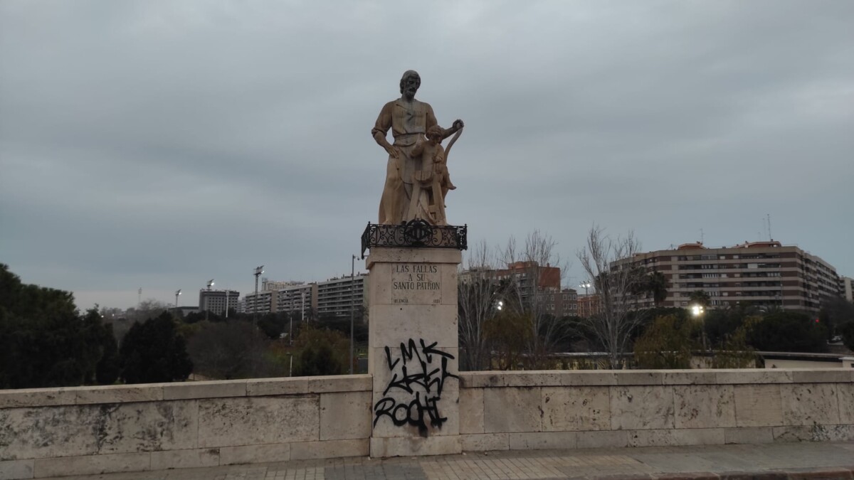 Cs insta a la concejala Tello a retirar las pintadas en la estatua de San José donde las Falleras Mayores harán la Ofrenda el sábado