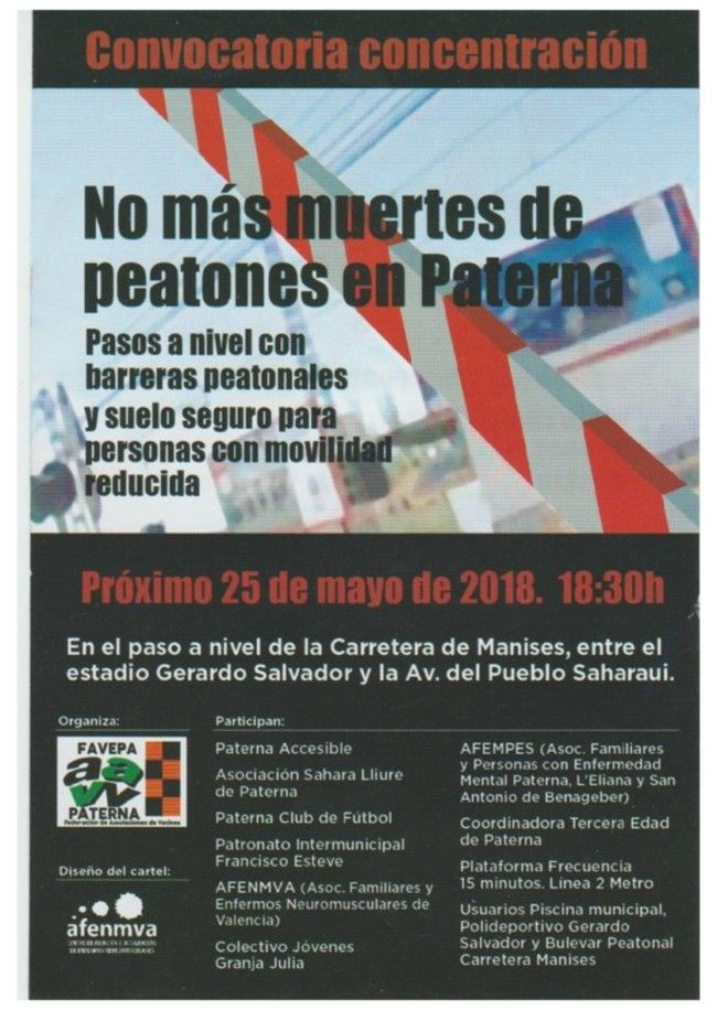 FAVEPA convoca una concentración por la mejora de la seguridad de los pasos a nivel de Metrovalencia en Paterna
