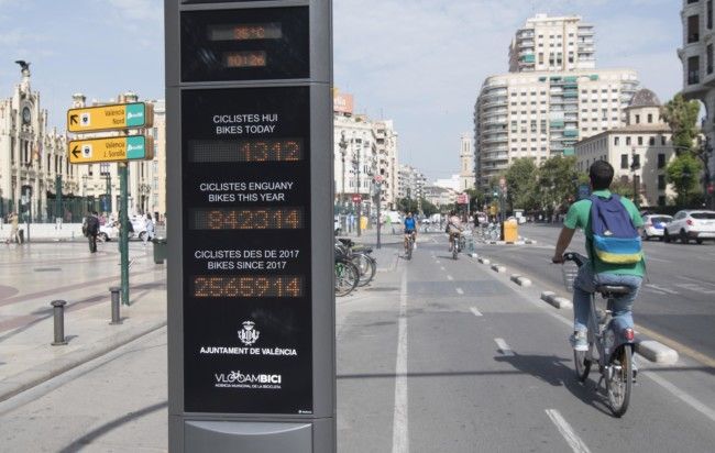El anillo ciclista de València estrena nuevo contador digital de bicis en la calle Xàtiva