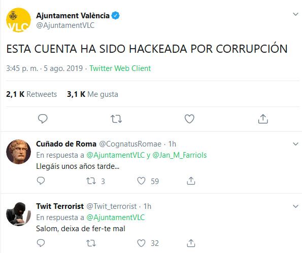 Hackean la cuenta de Twitter del Ayuntamiento de València ‘por corrupción’