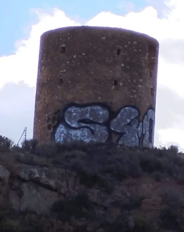 El PSPV de Puçol pide la retirada de un grafiti sobre el Molí de Vent tras meses sin limpiarlo