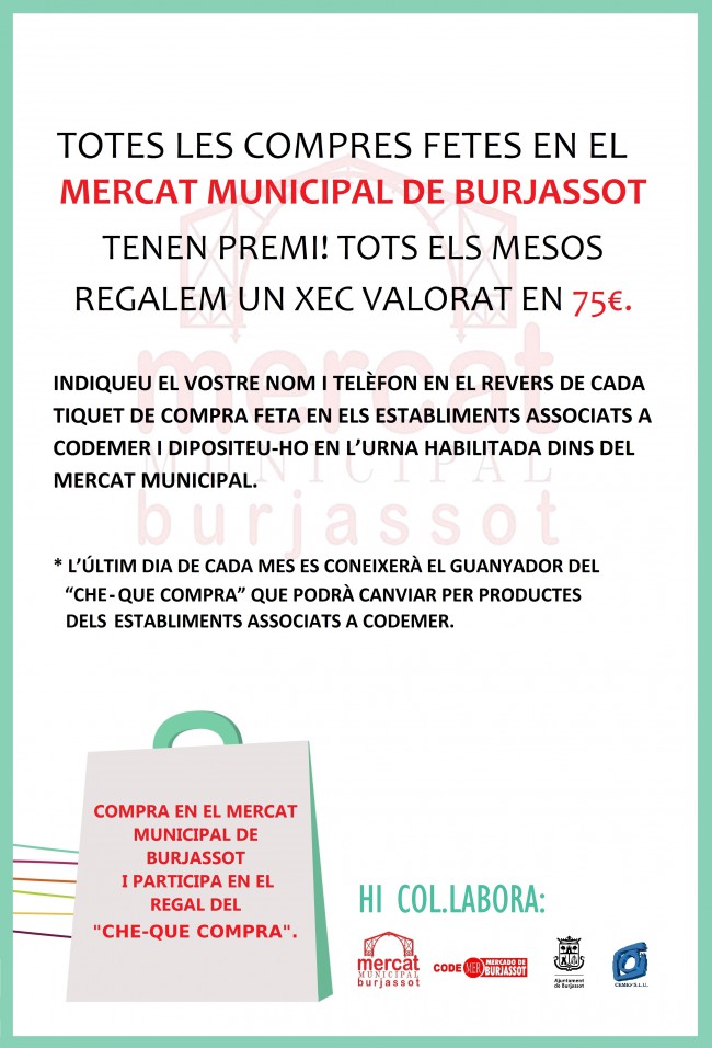 El Mercado Municipal de Burjassot sorteará, todos los meses, cheques valorados en 75 euros