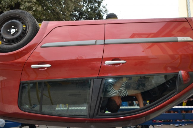 Un simulador de vuelco muestra a los escolares de Quart la importancia de utilizar el cinturón de seguridad